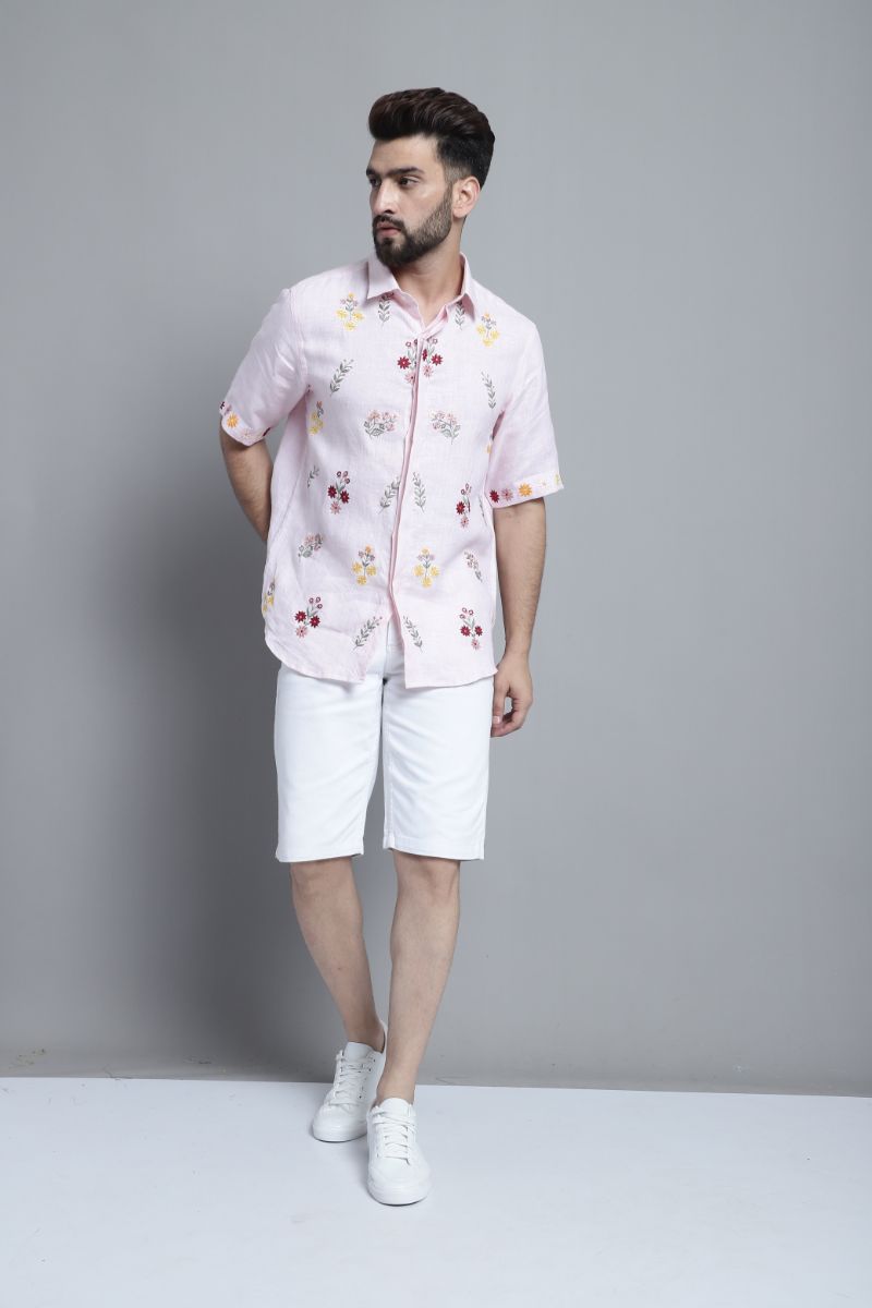 Made in soft hemp fabric, it is embellished with delicate floral embroidery detailing.